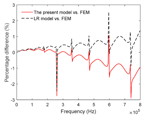 Percentage difference of thermoelastic damping between analytical models and FEM.
