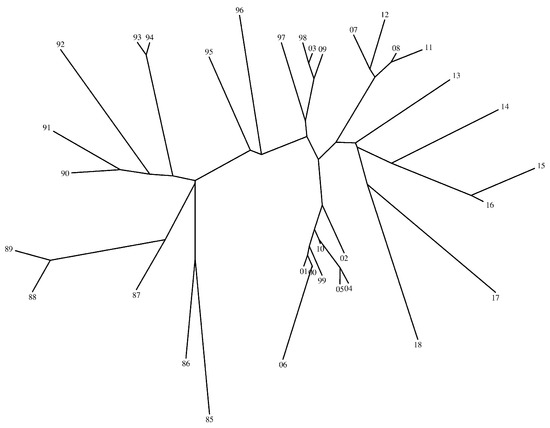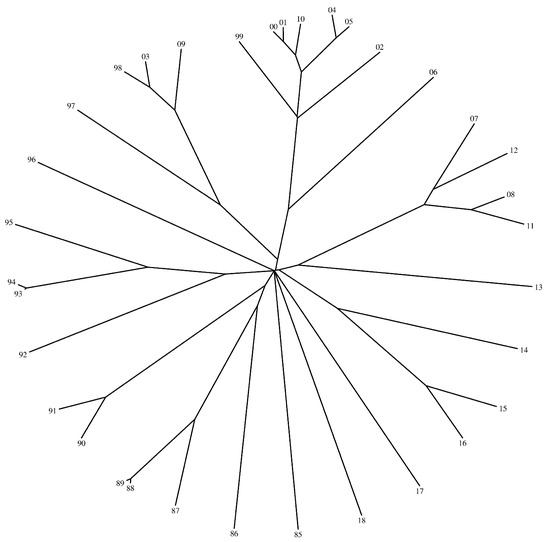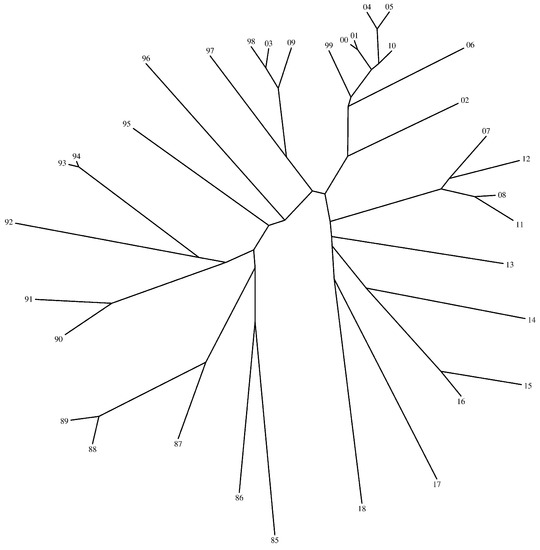 - Sokal, R.R.; Rohlf, F.J. The comparison of dendrograms by objective methods. Taxon 1962, 11, 33–40. [Google Scholar] [CrossRef]