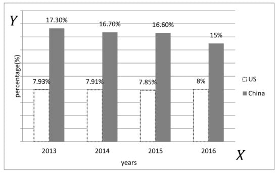 Sino-US logistics costs as a percentage of GDP. (According to the research report 2017).