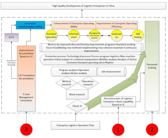 By means of the IE theory, the company conducts operation research and method research on the enterprise logistics production process, deeply analyzes the basic laws that the logistics production process should follow, comprehensively improves the process, reduces waste, and forms standard operations. The company introduces modern information technology and builds an efficient management information system through “IE+IT,” where IT is information technology, and continuously improves the efficiency of the company. At the same time, in the continuous cycle of the above process, it can attach importance to human factor, strengthen the training of logistics professionals, and make up for the shortage of professional talents. Through the process of continuous operation, it can improve the company’s operational capabilities and achieve high-quality development. Based on this, this paper designed three paths for the high-quality development of Chinese logistics companies.