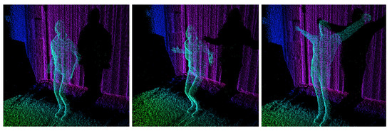 Sequence of three key frames extracted from point cloud data representing happiness.