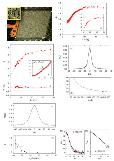 - Combe, G.; Richefeu, V.; Stasiak, M.; Atman, A.P.F. Experimental validation of nonextensive scaling law in confined granular media. Phys. Rev. Lett. 2015, 115, 238301. [Google Scholar] [CrossRef]