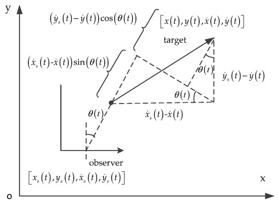 In Figure 1, the target’s state vector is , where is the target’s location, and is the target’s velocity. Similarly, the observer’s state is defined as , where is the observer’s location, and is observer’s velocity.