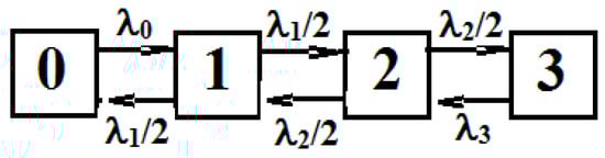 For , we have the states 0, 1, 2, 3, for which we write out the values of the sampling intervals for various values of the permissible probability of omission (see Equation (2)): when , when ,