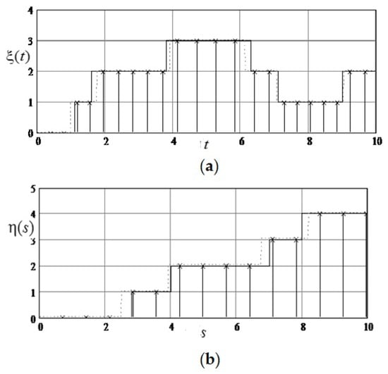 - Goritskiy, Y.A.; Kazakov, V.A. Sampling of Piece wise constant stochastic processes with smooth distributions of stay time in states. J. Comput. Syst. Sci. Int. 2013, 52, 854–865. [Google Scholar] [CrossRef]