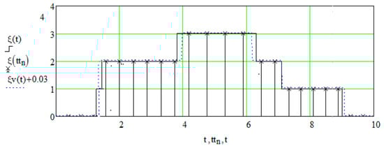 Using Equation (22), we obtain the estimated values for the process switching points. The restoration is performed according to the values measured in accordance with Equation (12).