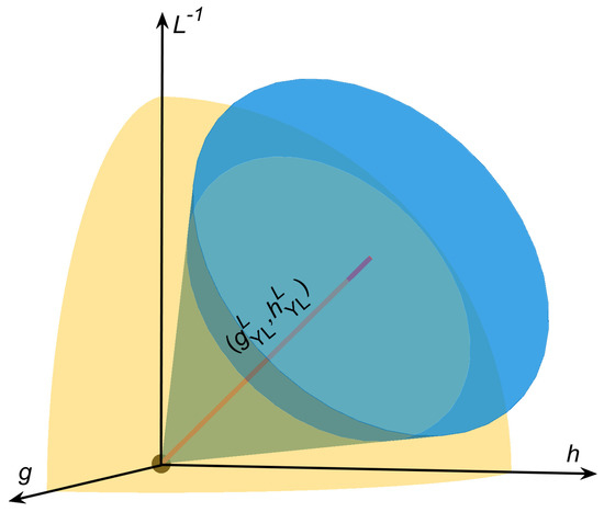 where and are the Pauli matrices at the n site in the x and z directions, respectively, and h are the external fields along the transverse and longitudinal directions, and L is the lattice size. It is worth stressing that the longitudinal field is imaginary. It has been shown that the imaginary longitudinal field plays the same role as the real field, and as a result, Model (1) has an ordinary FPPT point at for , where and [46,47]. Besides this FPPT point, there are also critical points for YLES at for [44,48], and these YLES points can appear at finite lattice size, while their locations vary with L [26]. Accompanied by DPT around the YLES point, the system undergoes a PT symmetry-breaking phase transition. For fixed g and (or with a fixed h), the system is in the PT symmetry phase with real spectra of the ground state. Meanwhile, for with fixed g (or with a fixed h), the system is in the PT symmetry-breaking phase with the ground state energy being complex, and the real part’s energy degenerates with that of the first exited state [23,44,45].