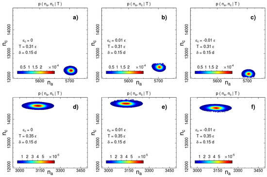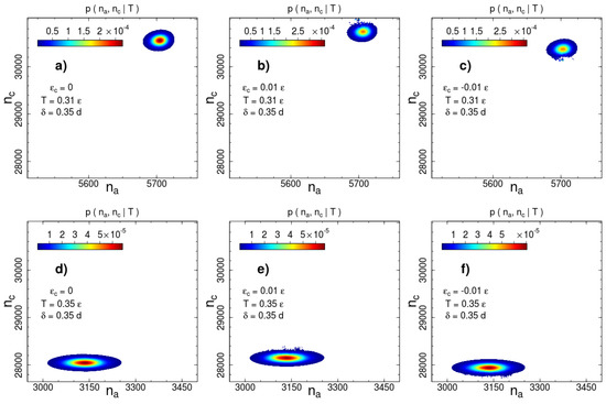 On the basis of the conditional probabilities estimated according to (8), we calculate the 2D entropy . We provided calculations for a series of interaction widths from to with a step as well as for and . Some examples of canonical probabilities of macro-states ,