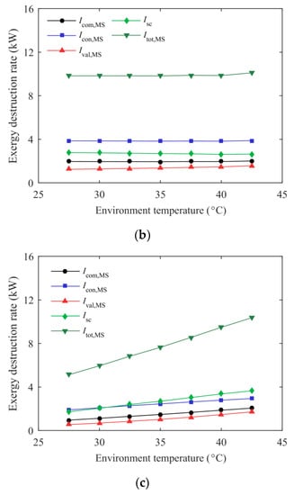 Exergy analysis has become an extremely effective way to verify system feasibility and maximize system energy savings []. The exergy destruction rate of each component is written as follows: