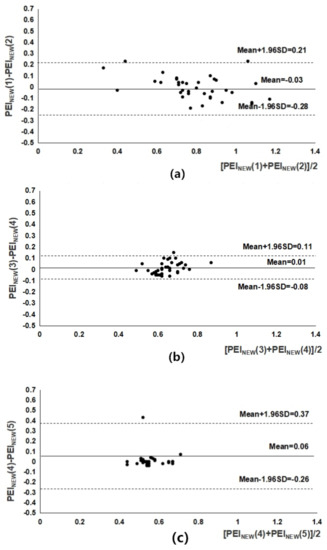 3.1.2. Reproducibility Analysis for PEINEW and PEIorginal for All Subjects