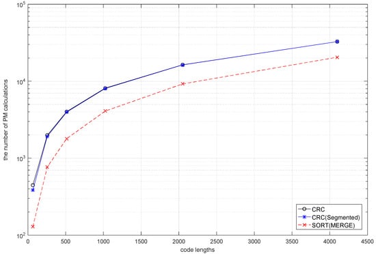 It can be observed that the computation complexity of CRC and two-segmentation CRC is almost the same whatever the code length is, and the difference between them can be ignored. Compared with CRC and two-segmentation CRC, there exists an extra merge sort in SAD-SCL.