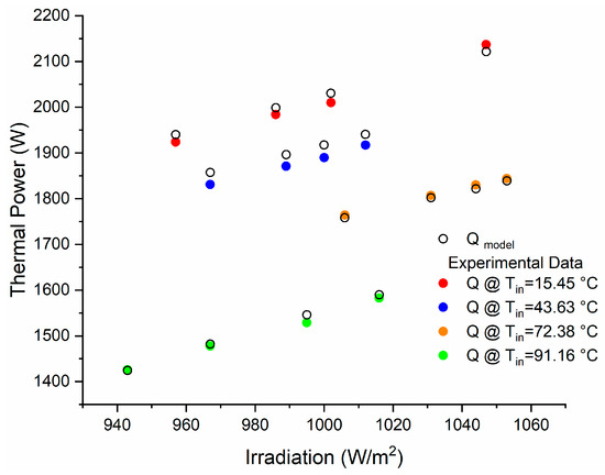 The results obtained in the field tests conducted by Kottwitza [28] were considered for the validation of the mathematical model used in this study, while Qmodel shows the results obtained through the model used by type 71, as shown in Figure 4.