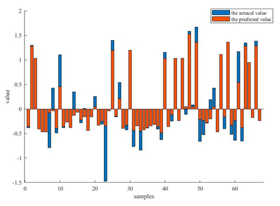 Figure 7 compares the actual output value and the predicted value for the Servo data set. It is clear that the predicted values are basically identical to the actual output values, and it has not been influenced by the outliers in the data.