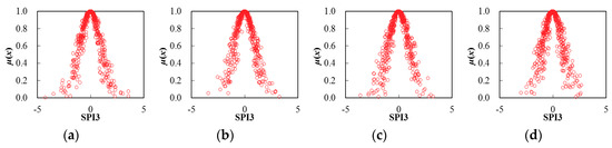 Step 3: Normal standardization processing. Through numerical integration computation, the calculated cumulative probability H(x) can be transformed to a standard normal distribution to yield SPI, which can be denoted as follows [22,23].