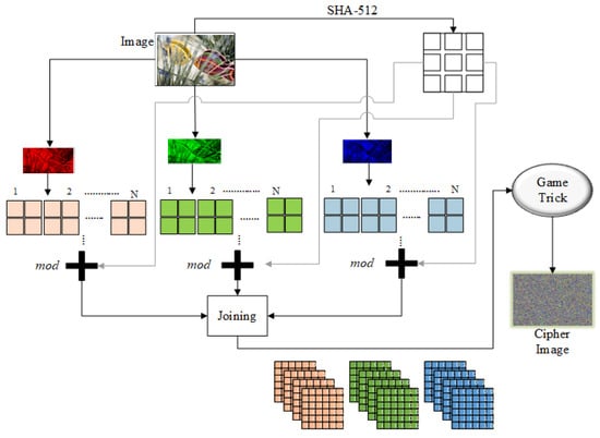 The general structural diagram of our proposed algorithm is given in Figure 1. The proposed image encryption is comprised of two stages: the first is modular addition and the second is SPD over the binary bit-planes for each of the RGB channels. The detailed encryption steps are discussed below.