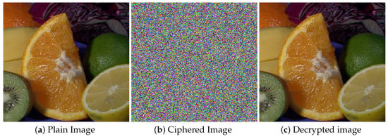 The main test image (fruits), along with its cipher and decrypted image, are displayed in Figure 2, while all the test images that we used are shown in Figure 3. The key and other experimental parameters are given in Table 1.