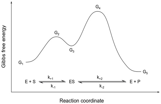 - Bozlee, B.J. Reformulation of the Michaelis–Menten Equation: How Enzyme-Catalyzed Reactions Depend on Gibbs Energy. J. Chem. Educ. 2007, 84, 106. [Google Scholar] [CrossRef]