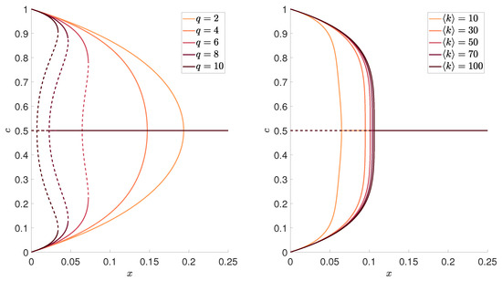 - Jędrzejewski, A. Pair approximation for the q-voter model with independence on complex networks. Phys Rev. E 2017, 95, 012307. [Google Scholar] [CrossRef] [PubMed]