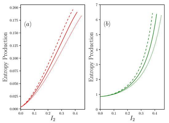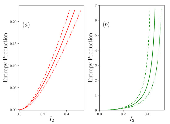 3.2. Entropy Production and Efficiency