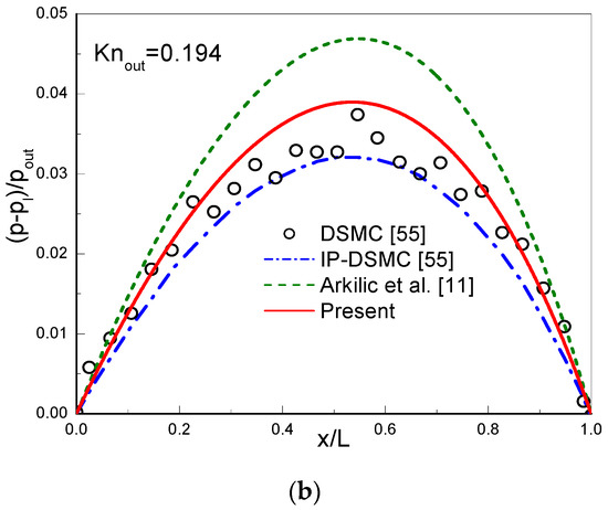 3.2. Microchannel Gas Flow with Pressure Boundary Condition