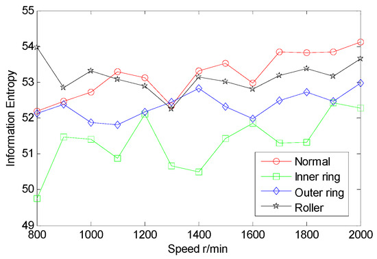 Information entropy is a concept used to measure information content in information theory. The more orderly a system is, the lower the information entropy is. Conversely, the more confused it is, the higher the information entropy is. Therefore, information entropy can also be said to be a measure of the systematic ordering degree [8]. The information entropy of the normal bearing is lower than the fault bearing, therefore, we can use it to evaluate the bearing working status.