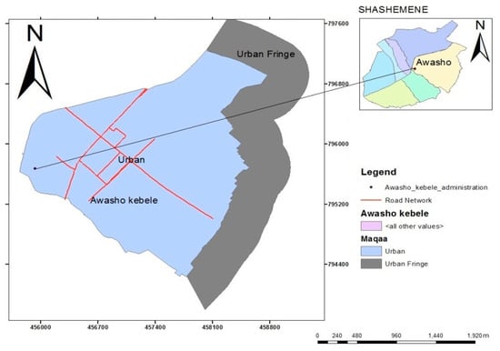 There are six main urban fringes in the greater city area of Shashemene (Figure 4). Of these areas, a number of peri-urban villages (i.e., Awasho, Arada, Abosto, and Bulchana) exist. These peri-urban areas stretch adjacently along the Awasho asphalt road in the east, Bulchana in the southeast, and Alelu, Dida-Boke, and Arada in the neighboring areas of the northwest. The Awasho urban fringe in the southeast was selected as the study site due to its fast-growing hub-like industrial and residential activities. Awasho is also a major transportation route currently coping with the impact of rapid urbanization where investors and foreign industrialists are favoring to locate. Pressure and demand for residential land, even though it is unaffordable due to unnecessary land withholding and price increase (i.e., created by land speculators), is seen to be physically available.