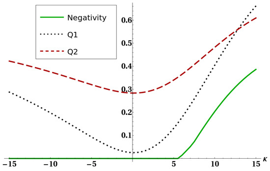 where Lemma 1 has been exploited. Expressing Equation (17) in terms of negativity and purity, we finally get