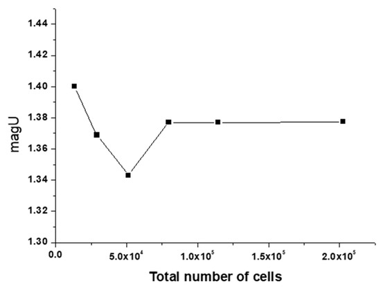 Structured grid is used for mesh generation. Six sets of meshes are obtained by increasing the number of cells in the transverse and longitudinal directions of the cross channel, the details of which are tabulated in Table 2. The measurement parameter of grid independence is the velocity modulus at (x, y) = (0, w).