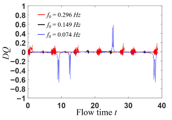 Curves of DQ as a function of time t under sinusoidal varying inlet velocity condition.