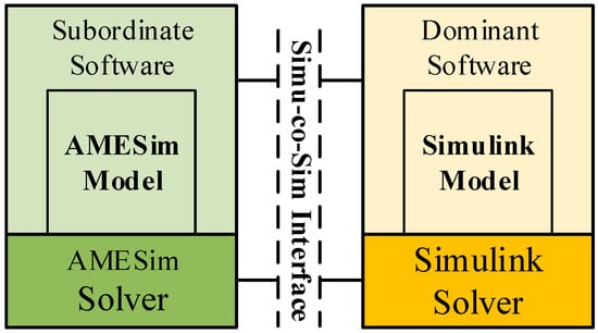 Although it is quite accurately efficient to build the models presented above in AMESim, the complex control algorithm is difficult to implement within it. In this paper, a co-simulation interface in AMESim was adopted to communicate with MATLAB/Simulink so that the control algorithm could be developed in Simulink. The specific data exchange and co-simulation process is showed in Figure 6.