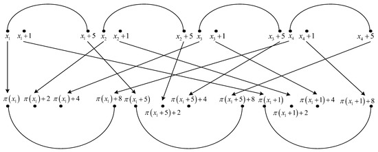 The four elements of permutation indicated in Figure 2 are written in detail below.