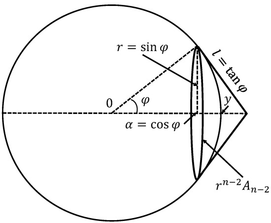 Estimation of the area of the spherical cap. A point of is Fisher-separable from with the threshold if and only if it does not belong to the spherical cap with the base radius and the base plane orthogonal to y. The surface of this spherical cap is less than the lateral surface of the cone that is tangent to the base. The -dimensional surface of the base is . The lateral surface of the cone is .