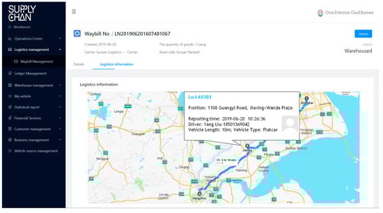 BCautoSCF is driven by IoT and BCT, where IoT is designated to serve as implementing data acquisition and data circulation while BCT guaranteed that shared and published information is reliable and authentic in a transaction [,,,]. It is implemented based on a commercial BCT infrastructure (i.e., Xuper, https://xuper.baidu.com, PBFT as consensus algorithm), developed by a vast array of programming technique stacks (e.g., Java, Python, C++, etc.), and runs on the basis of Software as a Service (SaaS). As described in Figure 2, the functionality hierarchy consists of: (1) Underlying protocols. It is used as the fundamentals of trust mechanism, including distributed ledger, encrypted signatures, validation/synchronization, and block-linked storage and privacy security. (2) Custody data. It integrates various data sources to form a time-stamped data stream, including ordering/purchasing, warehousing/logistics, contracts/documents and pre-payment/invoices. (3) Infrastructures. It is the core physical and virtual building to construct the platform, including Blockchain implementation, IoTs, BDS, global positioning system (GPS), radio frequency identification (RFID), image recognition (IR), etc. (4) Business management. It implements a wide type of business management and visualization modules, for instance, vehicle monitoring system, which usually equips IoT garments to ensure that the collateral is under the full custody. The transportation management system and warehouse management system provide reliable logistic service. (5) Third party integration. It connects third party services (e.g., ant credit) for the risk control. (6) User interfaces. It implements the user interfaces based on web technology.