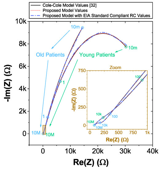 Comparison of results of proposed bioimpedance models fitted to data of [32].