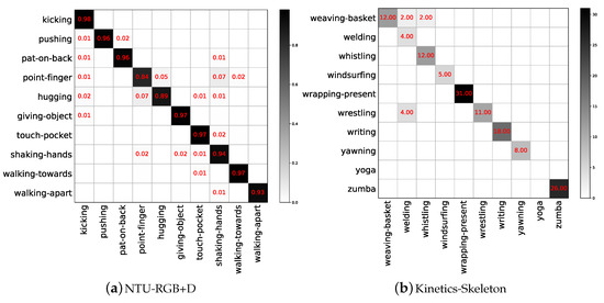 - Shi, L.; Zhang, Y.; Cheng, J.; Lu, H. Skeleton-based action recognition with directed graph neural networks. In Proceedings of the IEEE Conference on Computer Vision and Pattern Recognition, Long Beach, CA, USA, 16–20 June 2019; IEEE: Piscataway, NJ, USA, 2019. [Google Scholar]