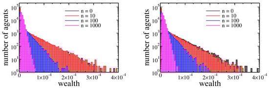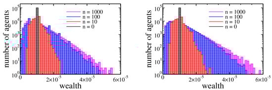 - uniform distribution—the initial wealth of each agent was uniformly distributed on the interval ;