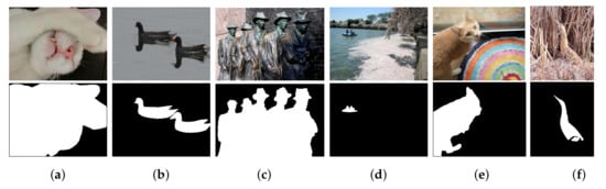 - Luo, Z.; Mishra, A.; Achkar, A.; Eichel, J.; Li, S.; Jodoin, P.M. Non-local deep features for salient object detection. In Proceedings of the IEEE Conference on Computer Vision and Pattern Recognition, Honolulu, HI, USA, 21–26 July 2017; pp. 6609–6617. [Google Scholar]
