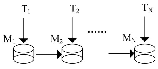 Incremental learning scenarios are used to describe the context and environment of incremental learning, and it can help us understand the problem and challenges better. van de Ven et al. [] have provided a comprehensive framework for the scenarios of incremental learning; they classified incremental learning scenarios into task incremental scenario, domain incremental scenario and class-incremental scenario according to specific experimental protocols. This framework is also adopted in [,]. However, it does not make a good conceptual distinction between incremental learning scenarios. In fact, the word “task” appears frequently in many studies and then almost all scenarios can be referred to as an incremental task scenario. Figure 1 gives the brief process of incremental learning. The continuously obtained data are divided into sequential tasks, which can be represented as . means i-th data group, and . The incremental learning model is trained with new coming data and model , as shown in Equation (1).