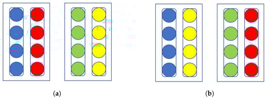 - Keep a in the new chimera cell and force b to reside in one of chimera cells . In this case, we have to run through the mapping produced by M and try replacing each subgroup with b and recalculating the entropy associated with the affected chimera cell. We also calculate and store the entropy that results from the replaced subgroup being placed in the new chimera cell at index . After running through the entire mapping replacing different subgroups with b, we choose the configuration that produces the overall lowest entropy (remembering to account for a being paired with a replaced subgroup in chimera cell ) and storing it as a potential solution to E, M, and MinE accordingly. Recall that calculating entropy is a operation and that the mappings contain subgroups, so overall this step is also .This step is why we call this algorithm greedier instead of optimal. Our algorithm assumes that when we force b to reside in an older cell , the subgroup that b replaces (call it d) automatically gets paired with a. This is not necessarily the case. It is possible that d can go reside in another older cell and produce an overall lower entropy value and that e, some low-indexed subgroup, can eventually get paired with a. The answer may not always be optimal, but in practice in produces lower entropy than the simple greedy method.Without any loss of generality, we can also force b to stay in the chimera cell at index and force a to reside in one of chimera cells .