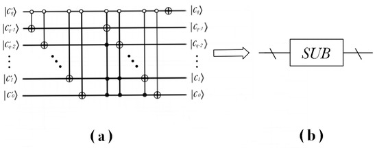 The realization process of the quantum circuit of the subtracter is shown in the Figure 5.