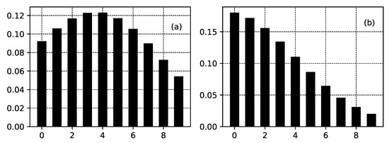 Let be an arbitrary sequence of nonnegative real numbers. We note that connected to distribution (21)–(23) can have arbitrary (nonnegative real) value. Let us set . According to Lemma 1, and can have arbitrary values at the same time. Let us consider the following equation for : . As and can have arbitrary values, we can choose these two parameters in such a way that the equation for is satisfied for an arbitrary value of given the value of , e.g., . We can do the same for . We can write the equation and we can choose free parameters and in such a way that the equation is satisfied for arbitrary given the value of . We can proceed in this way with respect to , ⋯ and as we have enough free parameters, we can choose them in such a way that we can obtain any sequence of numbers . Thus, the relationship from Equation (24) connected to distribution (21)–(23) describes any sequence of nonnegative real numbers. □