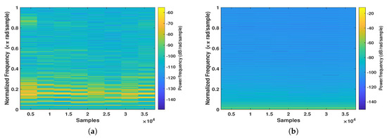 Spectrogram of the (a) input and (b) scrambled speech signals.