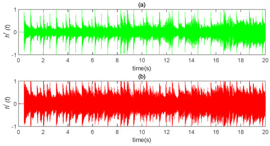 Schematic diagram of “Traveling” original waveform. (a) the real part of the original speech signal changes with time; (b) the imaginary part of the original speech signal changes with time (b = 300).