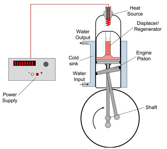 - Martaj, N.; Grosu, L.; Rochelle, P. Thermodynamic Study of a Low Temperature Difference Stirling Engine at Steady State Operation. Int. J. Thermodyn. 2007, 10, 165–176. [Google Scholar]