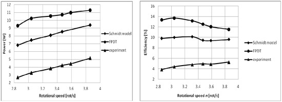 The effect of the rotational speed on the power and efficiency of the real operating machine is illustrated on Figure 8.