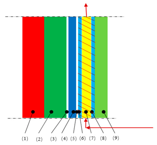 Equation (5) is recurrence temperature relations from the electrolyte to the working fluid. Equation (6) is recurrence temperature relations from the working fluid to the external environment. In the formula, a and b are the number of temperature nodes in each layer. x corresponds to an arbitrary structure layer.