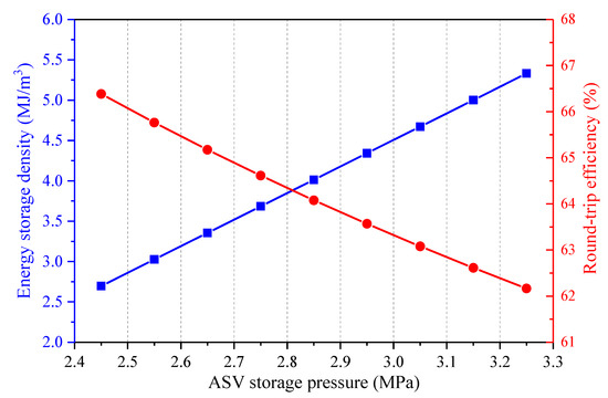 Influence of the ASV storage pressure on the performance of the proposed CAES system.
