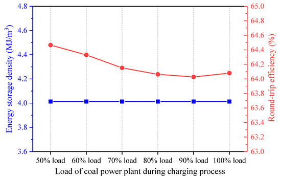 Influence of the coal power plant load during the charging process on the performance of the proposed CAES system.