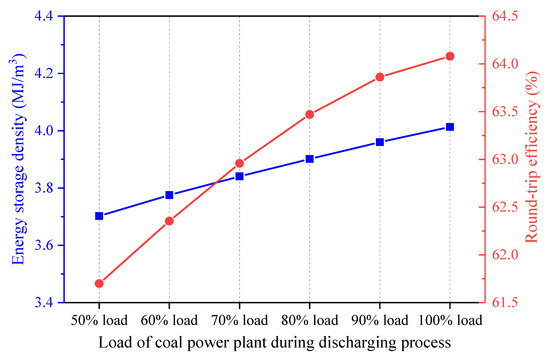 Influence of the coal power plant load during the discharging process on the performance of the proposed CAES system.