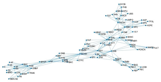 The last few years have witnessed an increasing research literature on systemic risk, with the aim of identifying the most contagious institutions and their transmission channels. Specific measures of systemic risk have been proposed for the banking sector; in particular by Reference [4,5] (MES), Reference [6,7,8] (SRISK), Reference [9] (CoVaR), Reference [10] (CES), and Reference [11]. These approaches leverage financial market price information to asses the financial institution’s risk from the estimated loss probability distribution, conditional on a crash event in the financial market. However, they do not address the issue of risk transmission between different banks. In order to address this aspect of systemic risk, researchers have introduced financial network models [12,13,14,15]. Networks have emerged as a useful tool for understanding contagion and systemic risk, in financial systems. In fact, after the 2008 financial crisis, there have been many studies on financial networks and their role in systemic risk. A major finding emphasized by these studies is that financial contagion is mainly driven by system-wide interconnectedness of institutions. In particular, Reference [16] propose several econometric measures of connectedness based on Granger-causality networks and principal component analysis. References [17,18] propose tail dependence network models aimed at overcoming the bivariate nature of the available systemic risk measures. Systemic risk models are typically based on the assumption of full connectedness among all nodes, which makes their interpretation difficult and also their estimation hard when a large number of them is being considered.